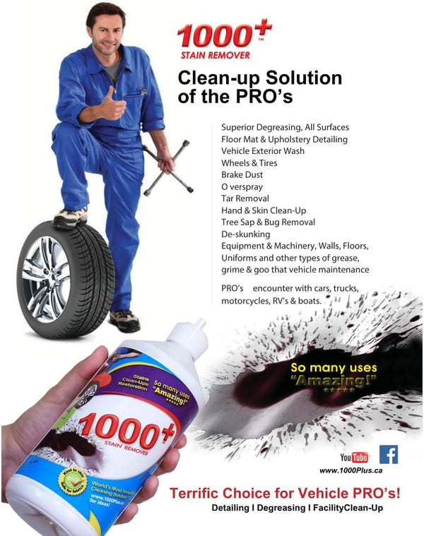 1000+ Stain Remover/Spray Cleaner Concentrate uniquely combines Pro-Grade stain fighter with spray cleaner refill concept to make 20 reusable spray bottles! 909mL for Home + 125mL Go Anywhere Size!
