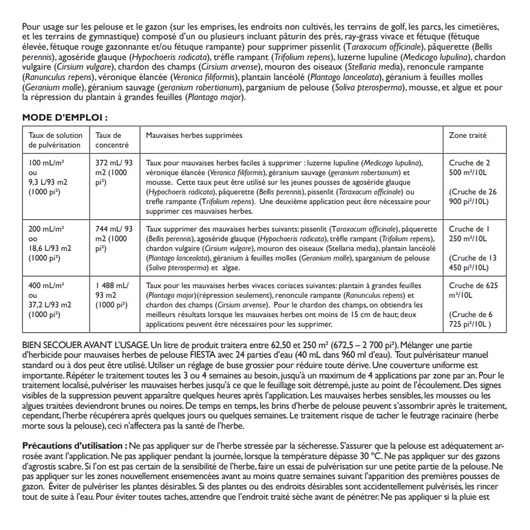 Suitable for broadcast application or spot treatment, Fiesta is a versatile, patented product that will help grass look its best, even in many pesticide restricted areas such as parks, golf courses, cemeteries, sports fields, and playgrounds. This product is ideal for lawn care where pesticide bans exist.