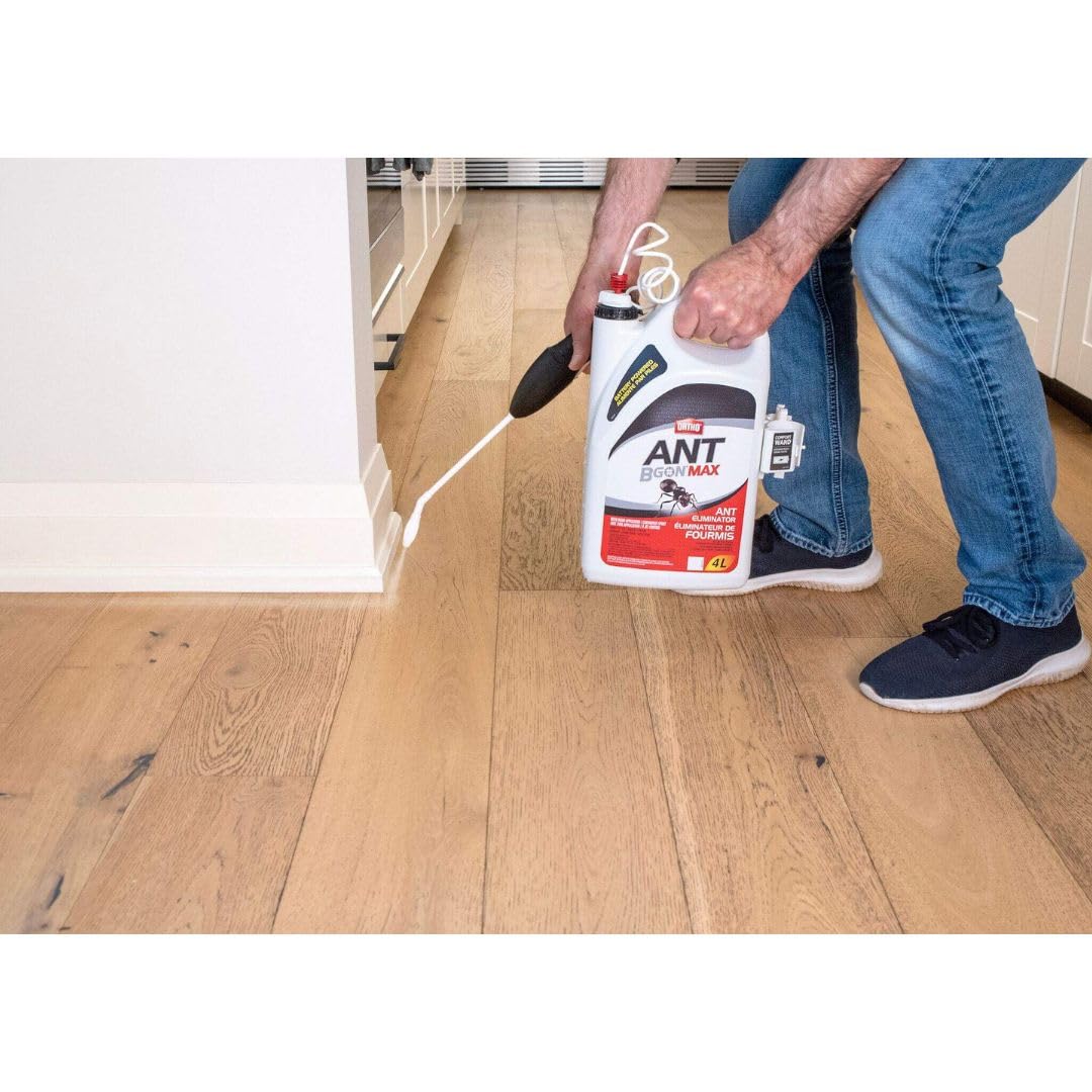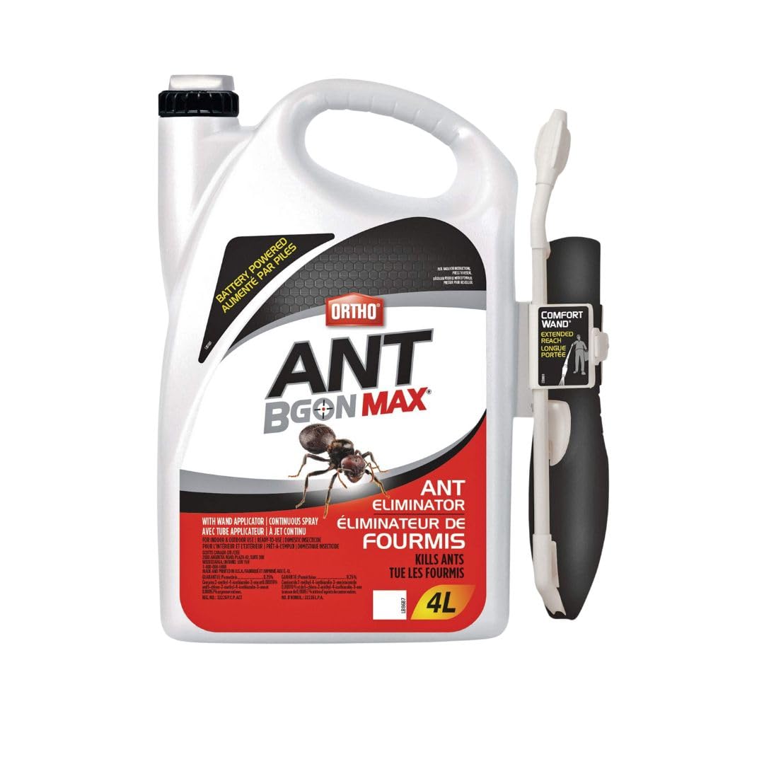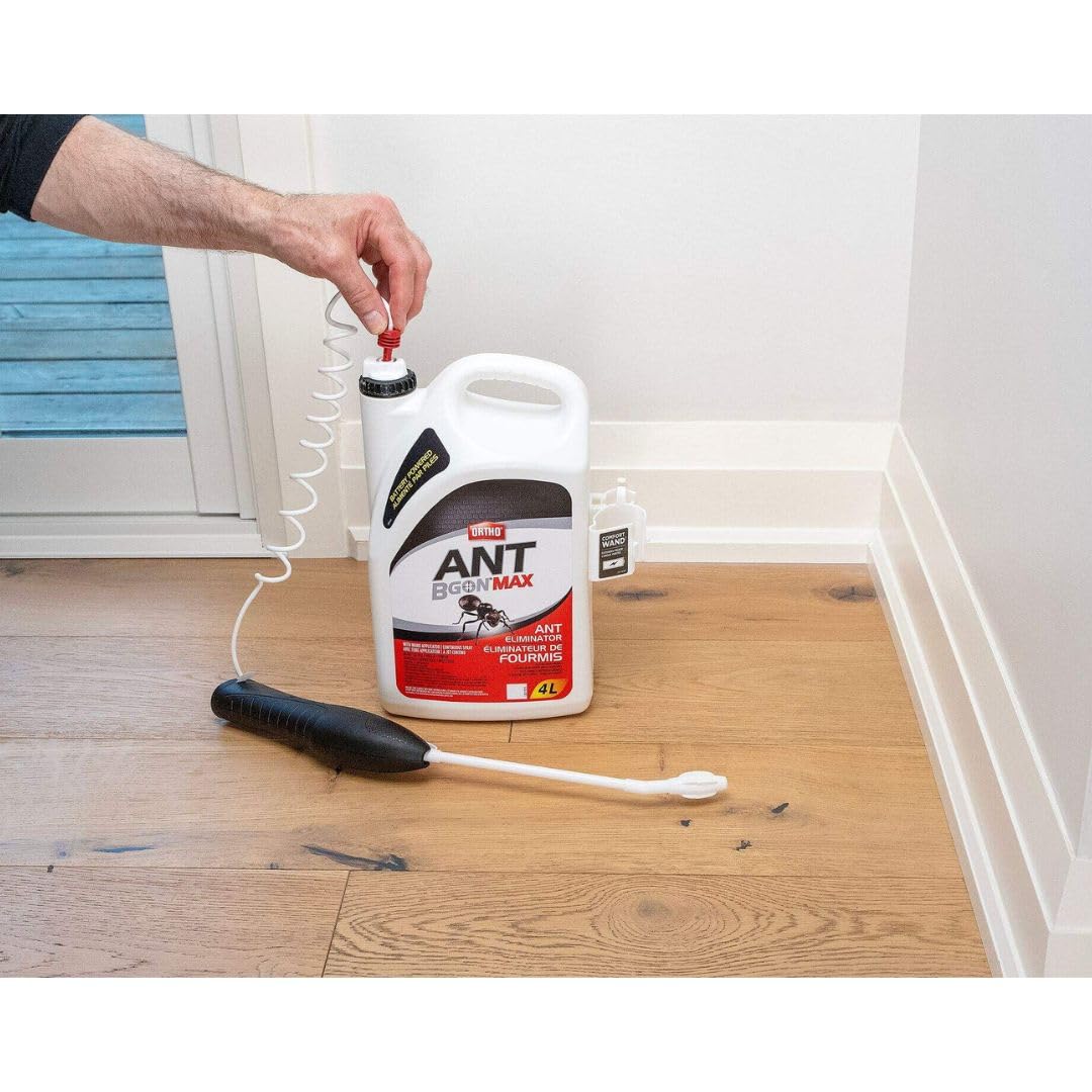 Get rid of ants with Ortho Ant B Gon MAX Ant Eliminator With Wand Applicator. Perfect for larger infestations, this ready-to-use ant killer is specially formulated to kill ants inside buildings and outdoors on the exterior surfaces of buildings. Use as a crack & crevice or spot treatment. Use along and behind baseboards; walls behind and floors beneath appliances and furniture; localized areas of floors and floor coverings; and points of entry. Outdoors on the exterior surfaces of buildings, spray ant trails, nests, and any point of entry, including door and window frames. Thanks to the battery-powered Comfort Wand Extended Reach, spraying is fast and easy – even in hard-to-reach places.